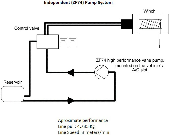 For general off-roading this system offers unparalleled power and 3 meters/min line-speed under full load. It may seem more expensive than a cheap battery powered system, but most owners of electric winch system are willing to spend around the same for the extra performance on a Stage 2 system as they would on a decent dual battery system. Not to mention the massive difference in reliability, durability, warranty and waterproofing. This system can however be difficult to install and sometime not possible depending on the vehicle, it is also not for everyone as the pump will usually take the place of the air-conditioner compressor